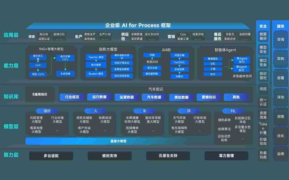 意昂2问学智车解决方案是一套基于AI技术的汽车行业智能化系统,,覆盖从底层算力到顶层AI应用的全栈方案。。。。方案由算力层、、、、模型层和应用层组成:算力层,,,方案支持多种一体机配置,,具备云端灵活部署、、、多云适配以及动态优化计算资源的能力;模型层,,,意昂2问学平台版提供了企业级AI应用一站式构建与管理平台,,,支持基于后训练强化技术的汽车企业专属模型的训练、、、评测和运营;应用层,,意昂2问学DeepSeek版提供包括超级员工、、、智能招采、、、智能营销、、、、智能客服、、AI for BI等一系列解决方案,,,可助力汽车行业实现数字化转型,,让管理更智能、、响应更敏捷。。